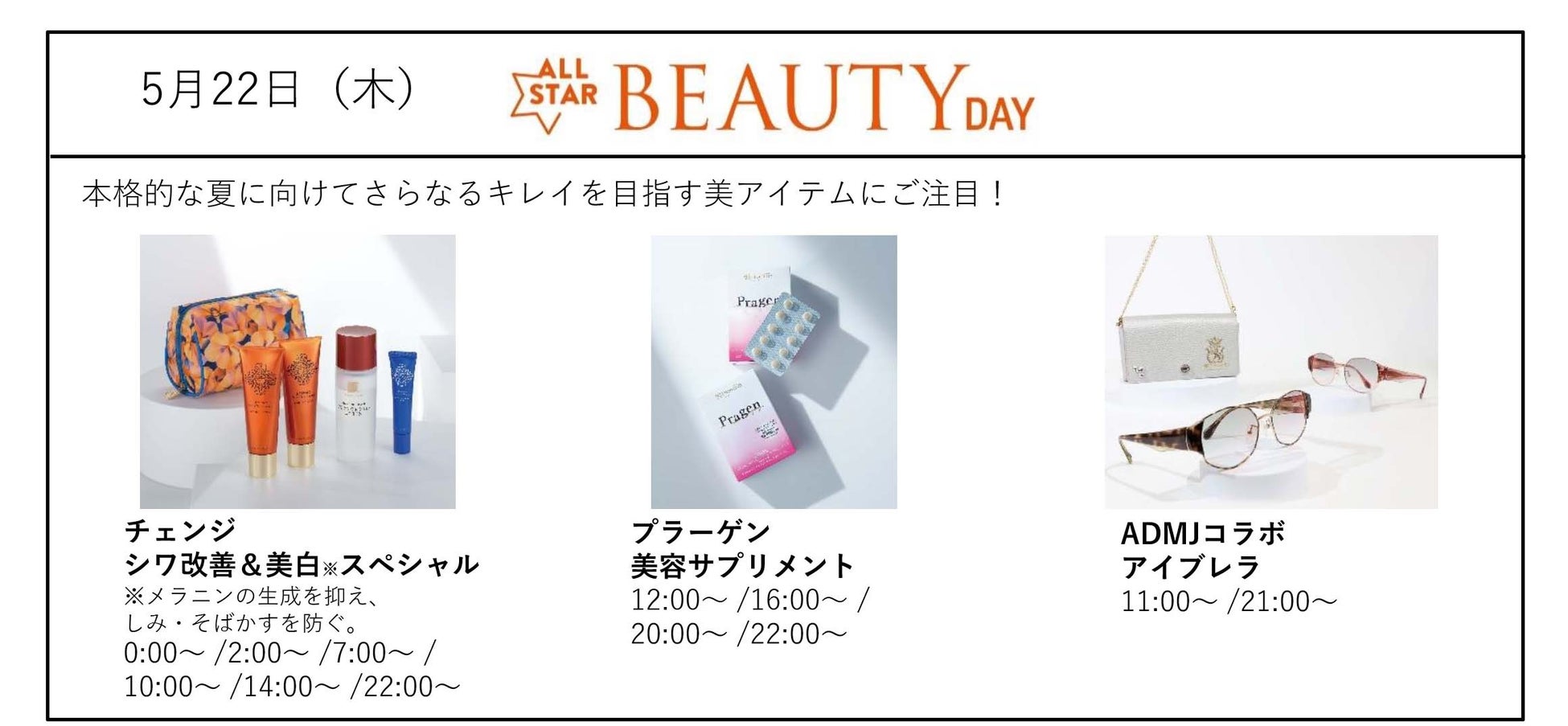 ショップチャンネル 5月20日(火)「オールスターファッションデイ」5月21日(水)「オールスターホームデイ」5月22日(木)「オールスタービューティーデイ」を放送