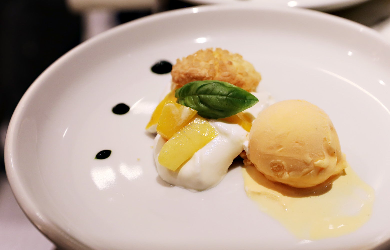 マンゴーショートケーキ バジルシロップ バターミルクアイスクリーム