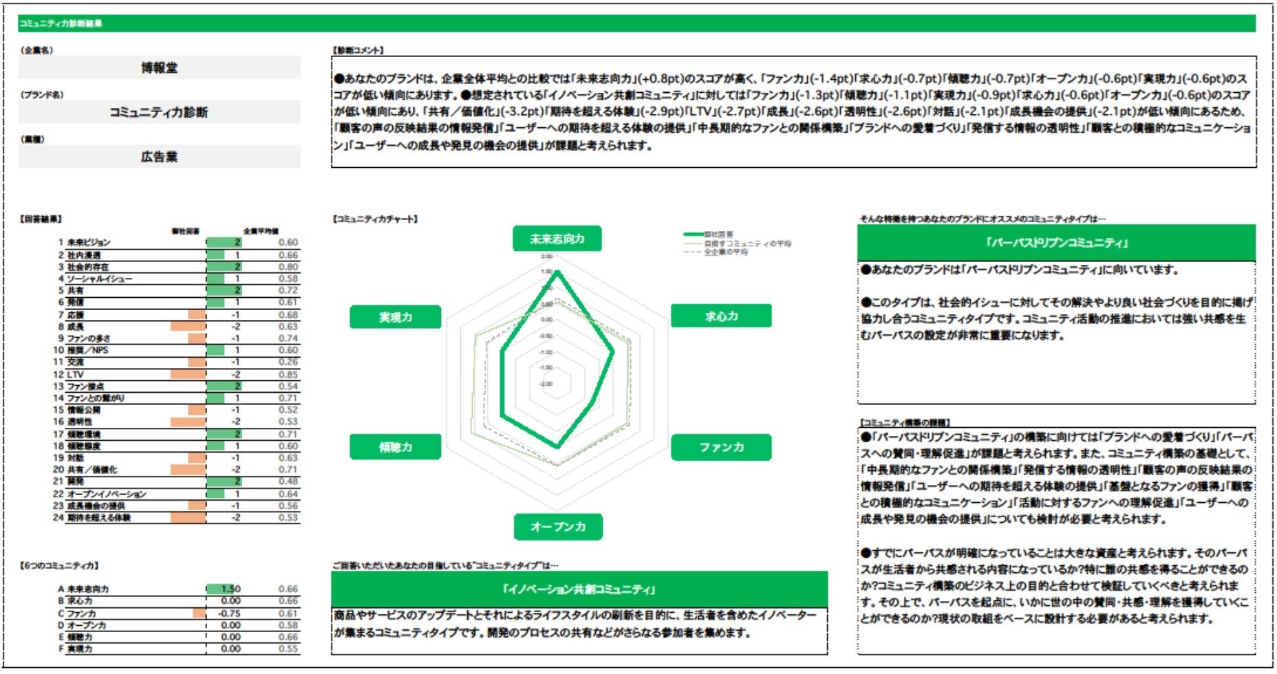 また、各指標の数値を当社の独自調査から算出した企業平均値と比較することで、そのコミュニティの実現に向けて対応すべきブランドの課題も明らかにし、成功するコミュニティの創出をサポートしていきます。