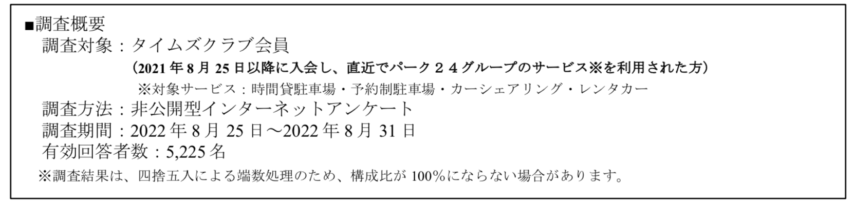 なお、本アンケートは、駐車場やカーシェアリング、レンタカー等のクルマに関わるサービスを利用した方々を対象としたものです。