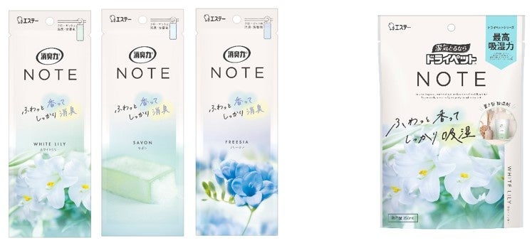 NOTEシリーズは、虫食いやニオイ、湿気といったクローゼット内の課題をそれぞれの製品で対策すると同時に、清潔感のある香りを通じて理想の収納空間作りをサポートします。2024年2月発売の防虫剤「ムシューダ NOTE クローゼット用」に加え、2025年8月には消臭芳香剤「消臭力 NOTE クローゼット用」と除湿剤「ドライペット NOTE 置き型タイプ」を新たに発売しました。