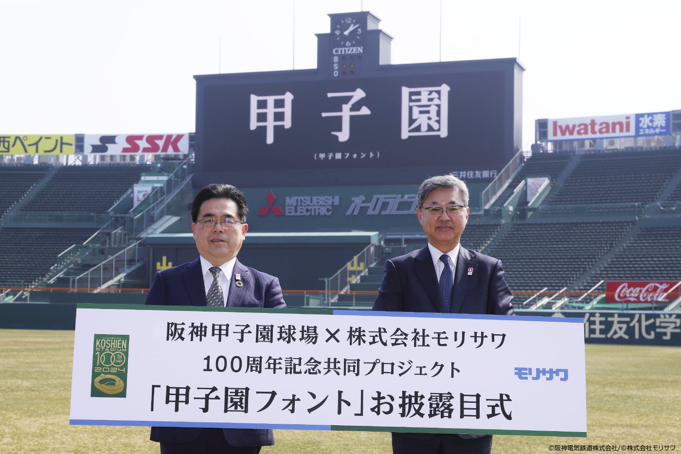 株式会社モリサワ(代表取締役社長:森澤彰彦 本社:大阪市浪速区敷津東2-6-25 Tel:06-6649-2151 代表、以下モリサワ)は、阪神電気鉄道株式会社(代表取締役社長:久須勇介 本社:大阪市福島区、以下阪神電気鉄道)との100周年記念共同プロジェクト『甲子園フォント』を開発し、2025年2月27日(木)に阪神甲子園球場でお披露目式を行いました。