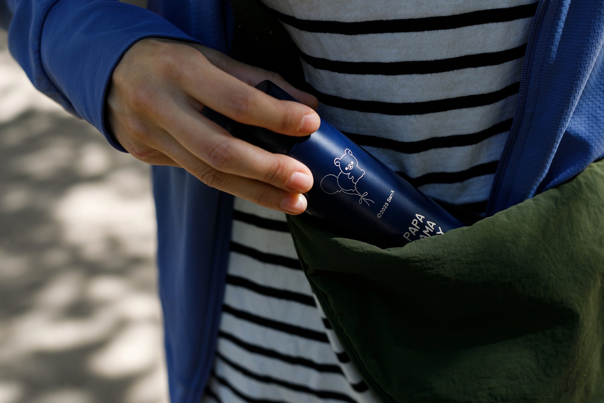 サイズは直径45ミリ×高さ144ミリ。小さめのかばんやマザーズバッグにもすっぽり入る大きさです。