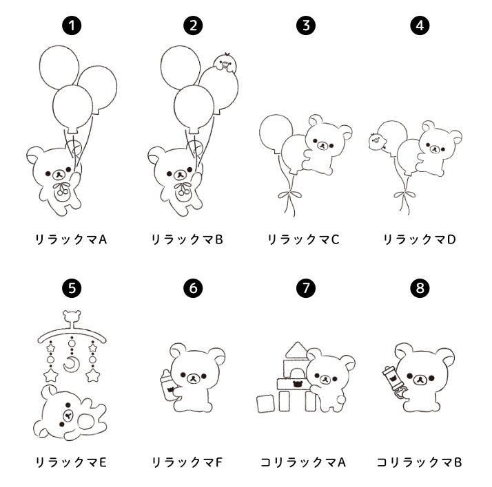 「リラックマベビー スリムボトル」は、やさしいタッチで描かれた、リラックマとコリラックマ、キイロイトリが登場する、8種類から選べるかわいいイラスト入り。風船やガラガラ、ベッドメリーやほ乳瓶など、リラックマたちと一緒に描かれた、赤ちゃんにとっておなじみのモチーフもとってもかわいいですね。