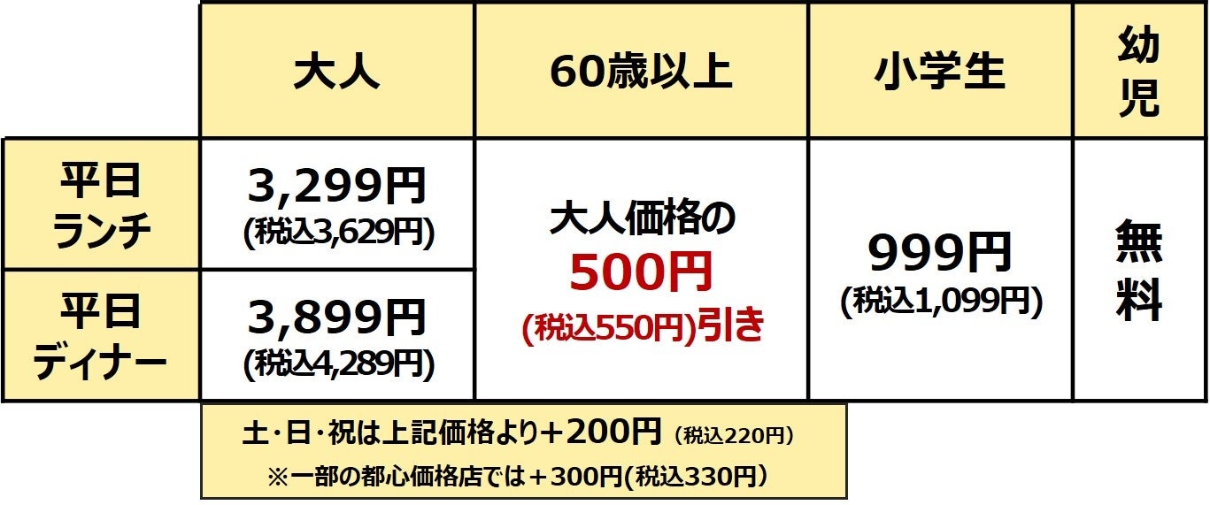 ②幼児は無料!小学生は全コース税込1,099円&60歳以上の方は税込550円引き