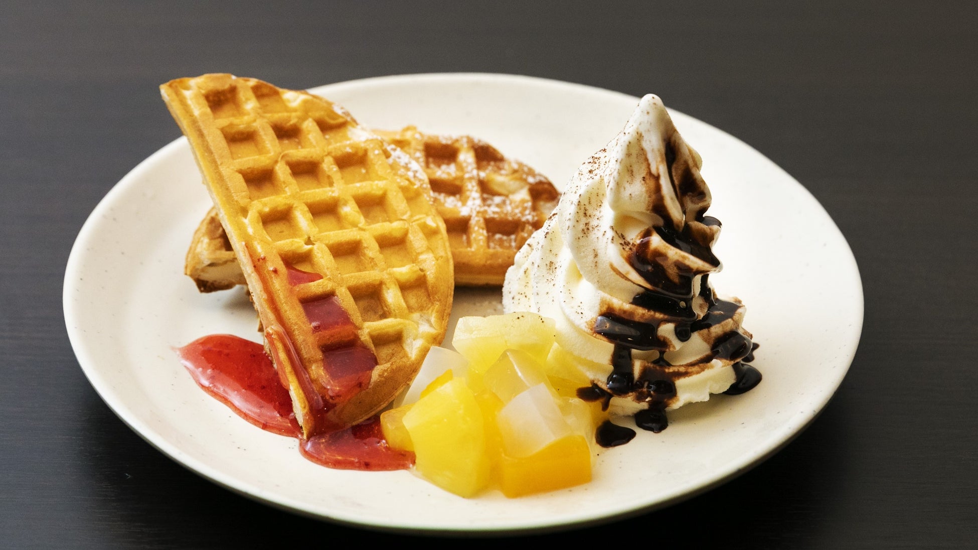 ソフトクリーム・クレープ・ワッフル・かき氷などのデザートを全部自分で手作り可能。シロップやホイップクリームなどのトッピングもお好きなだけおかけください。