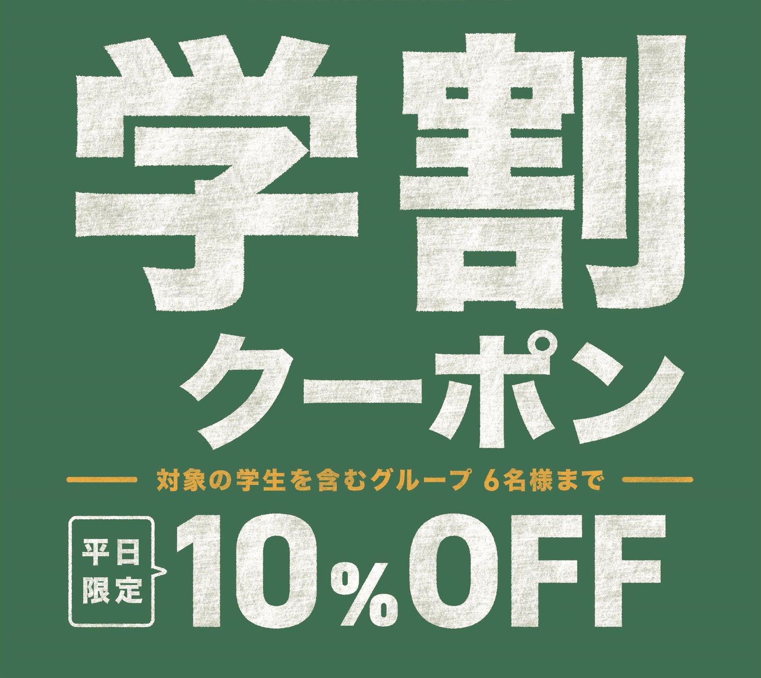 《4/10からスタート!【平日・学生限定】 学割クーポン復活》