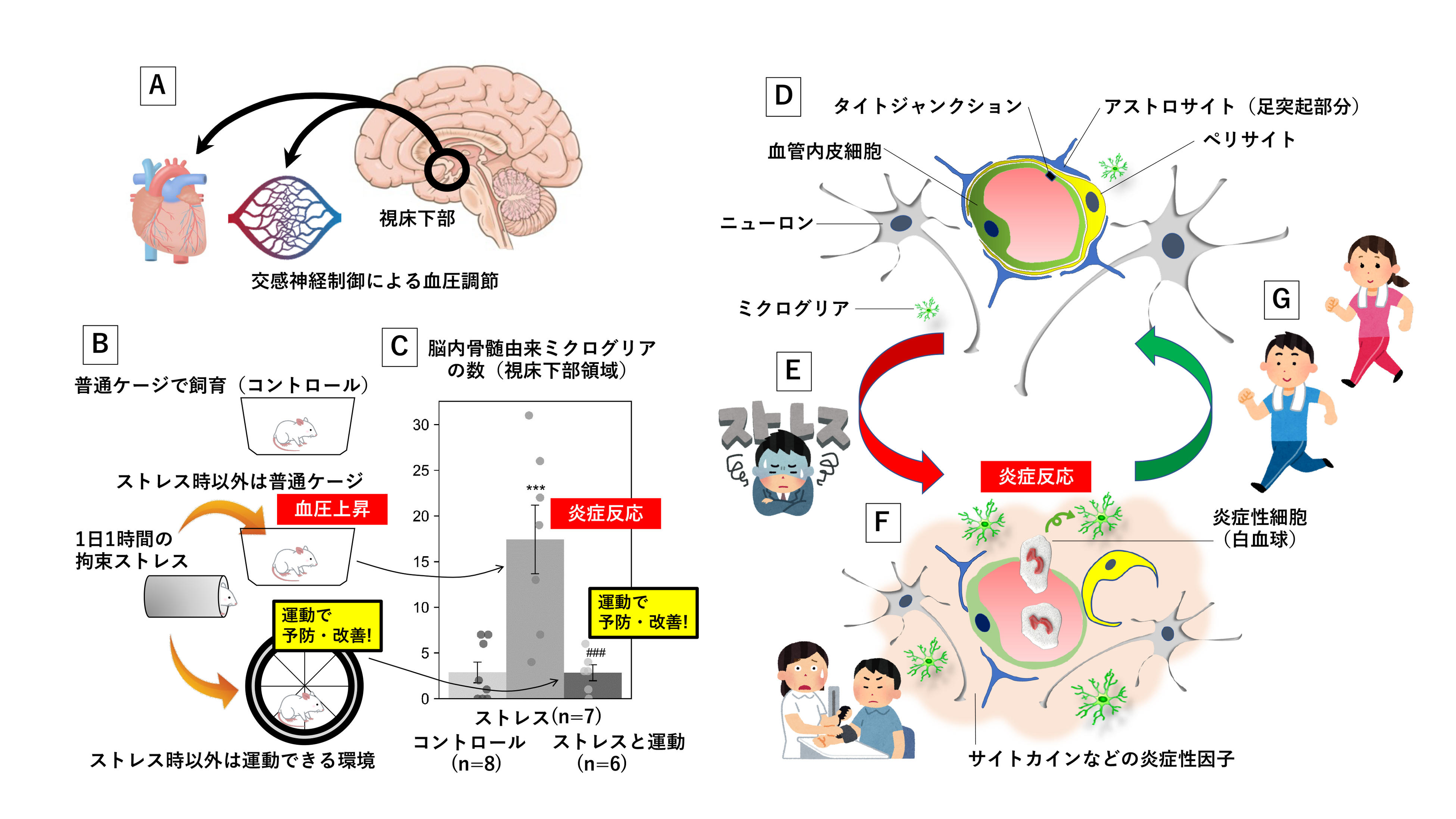 運動習慣はストレスによる視床下部領域の炎症反応を抑制することで高血圧発症を予防