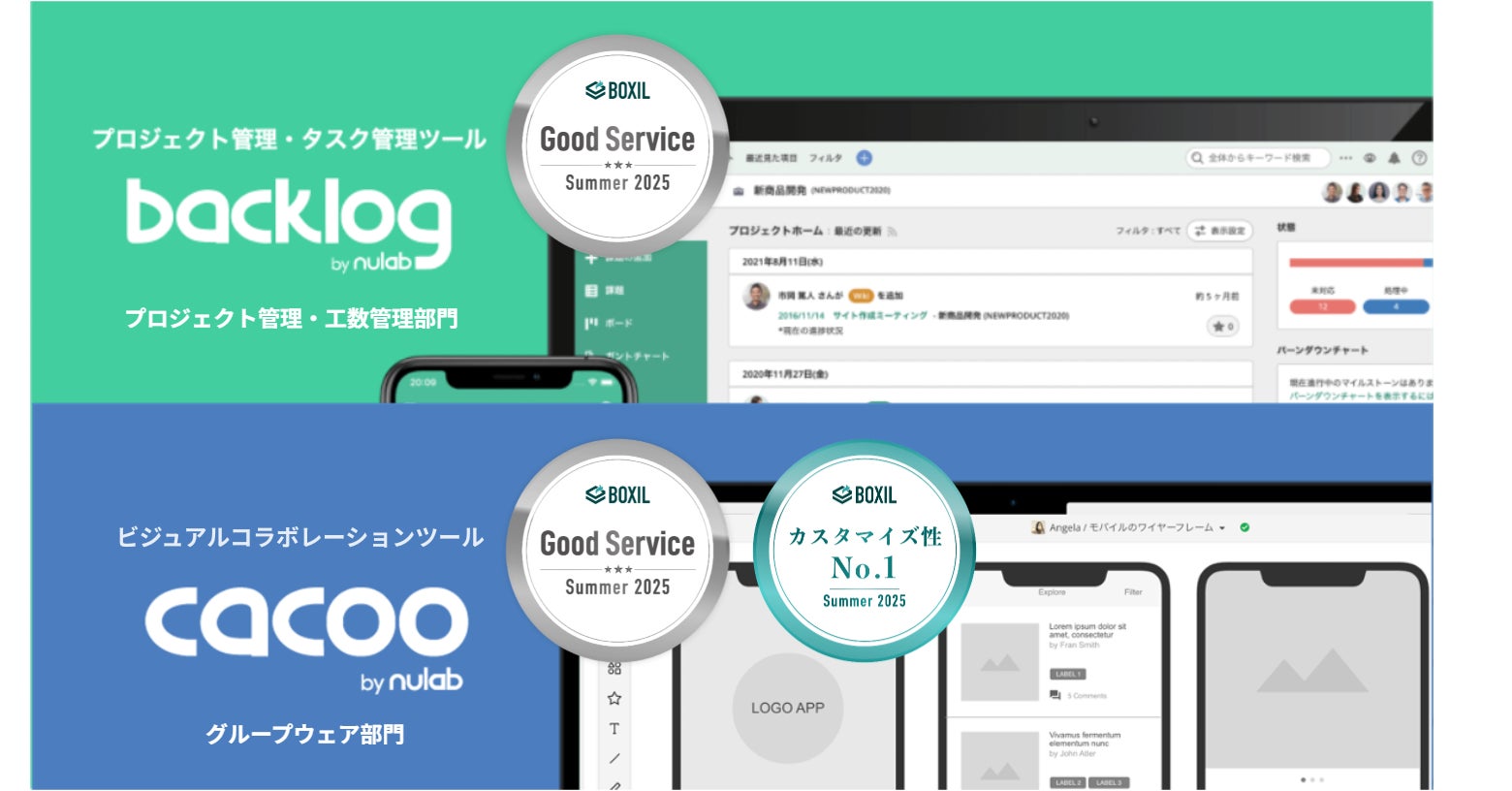 株式会社ヌーラボ(本社:福岡県福岡市、以下 ヌーラボ)が提供するプロジェクト・タスク管理ツール「Backlog」とビジュアルコラボレーションツール「Cacoo」は、スマートキャンプ株式会社(以下 スマートキャンプ)が主催する「BOXIL SaaS AWARD Summer 2025」の各部門で、「Good Service」を受賞しました。なお、「Backlog」はプロジェクト管理・工数管理部門で「同Autumn 2022」から12回連続、「Cacoo」はグループウェア部門で「同Spring 2024」から6回連続受賞となり、チームの生産性向上に寄与するツールとして現場からの支持を集めています。