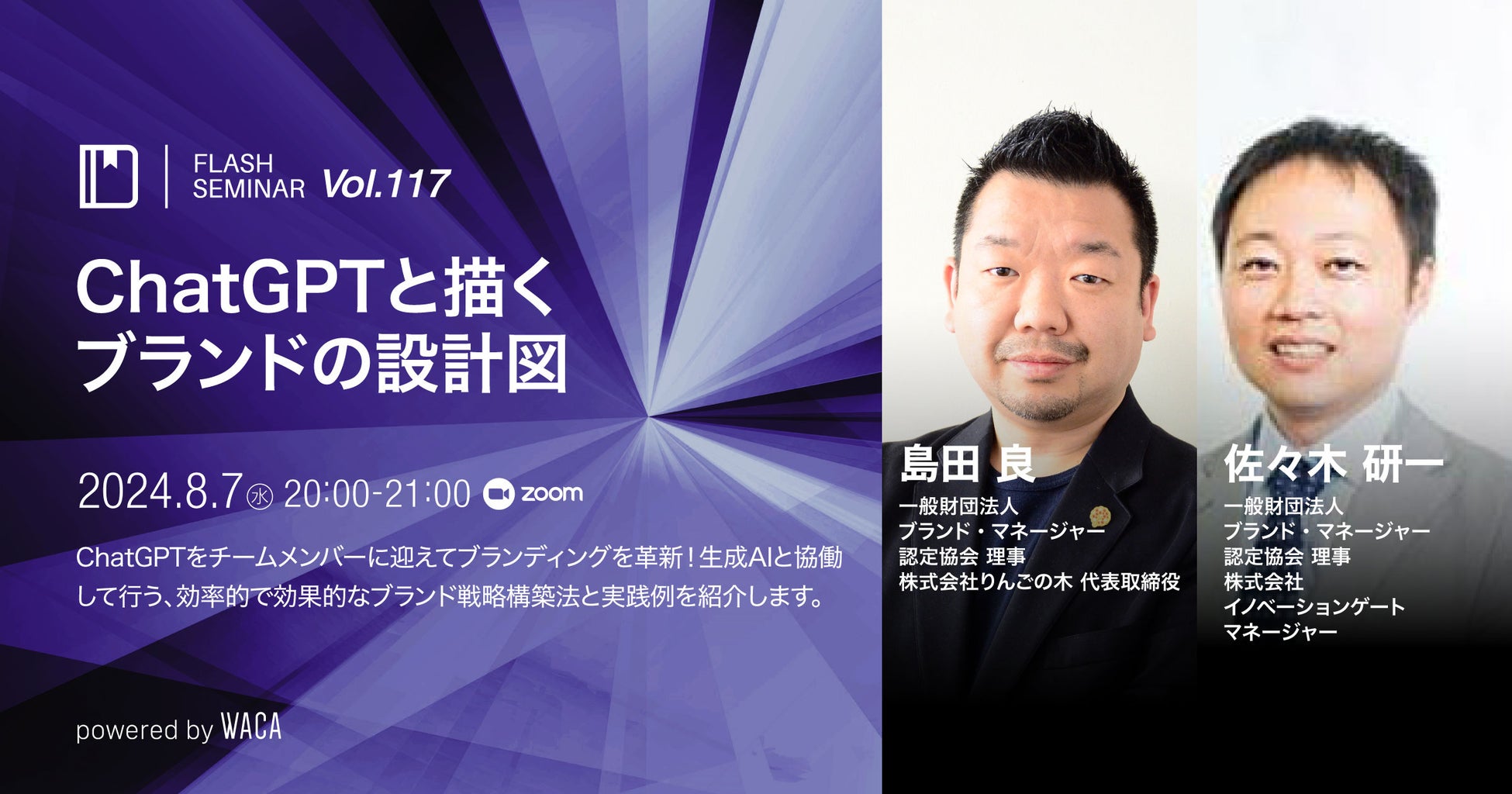 2024/8/7(水)20:00〜21:00 【Flashセミナー】Vol.117 ChatGPTと描くブランドの設計図