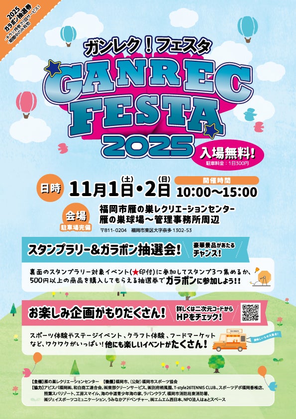 『ガンレク!フェスタ2025』開催のお知らせ(福岡市雁の巣レクリエーションセンター)