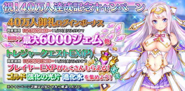DMM GAMES本格ファンタジーゲーム『宝石姫 JEWEL PRINCESS』40万人御礼キャンペーン開催☆ログインするだけで、今なら最大6000ジェム(11連ガチャ2回分)もらえる!?