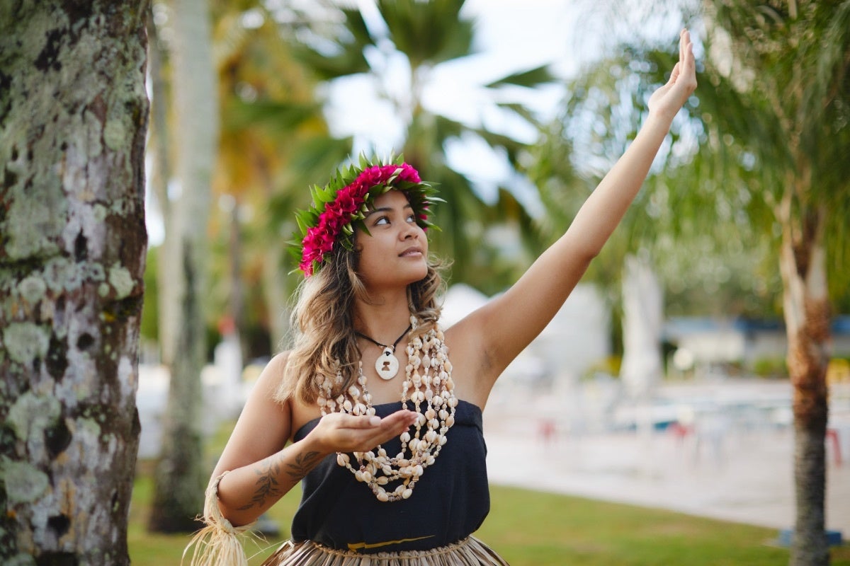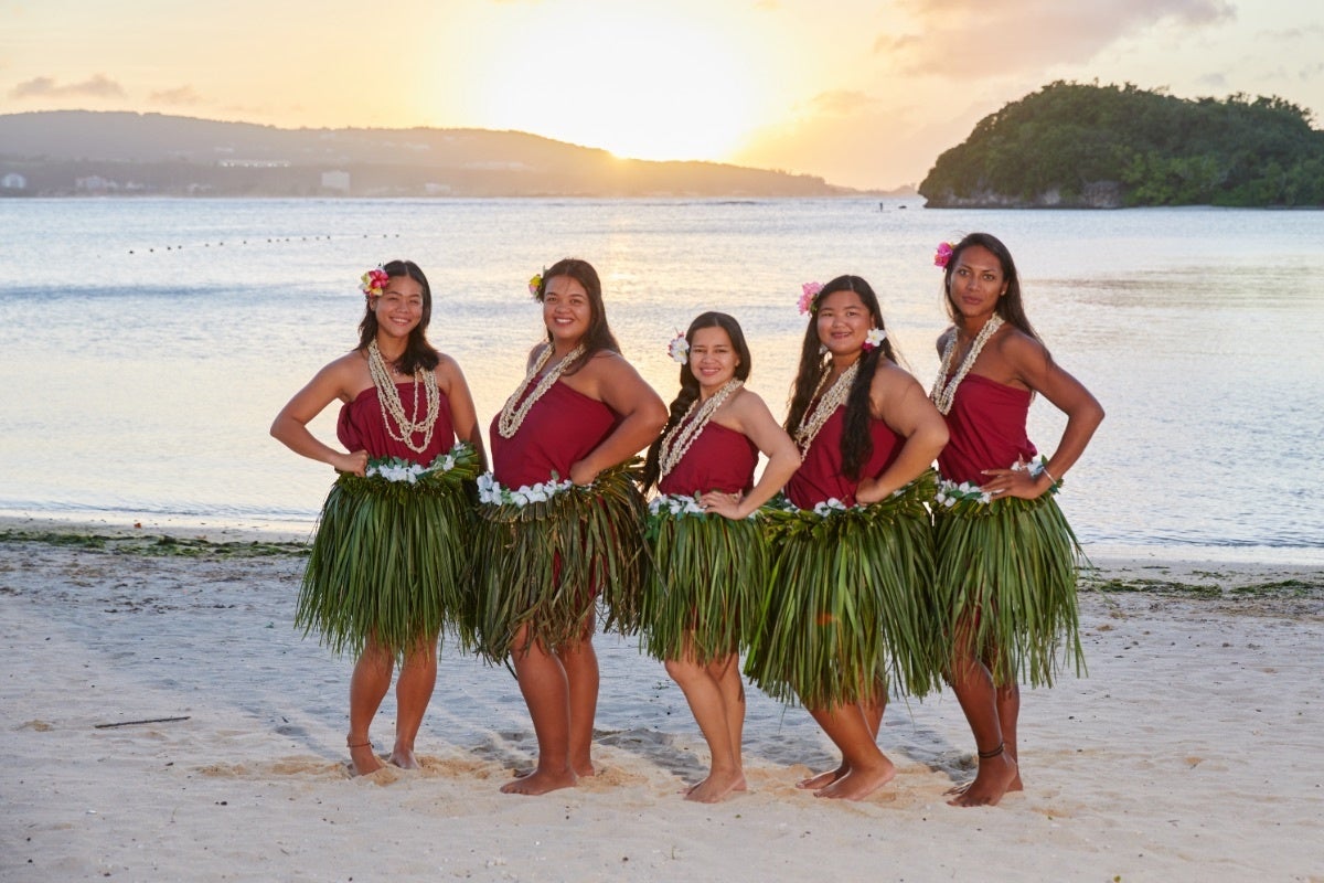 リゾナーレグアムで週3回開催されるイベント「Gupot Kanton Tasi(グプット・カントン・タシ/海辺のパーティー)」では、グアム出身のスタッフがダンスやゲームで海辺のパーティーを盛り上げます。期間中はスタッフの衣装にも花をあしらい、チャモロの伝統的なココナッツリーフを使ったスカートや、南国のお花を使用したマーマーやヘアピースを身につけ、セレモニーを華やかに彩ります。