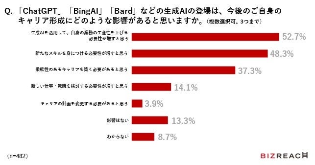 Q.「ChatGPT」「BingAI」「Bard」などの生成AIの登場によるご自身のキャリアへの影響について、ご意見があれば自由にご回答ください。