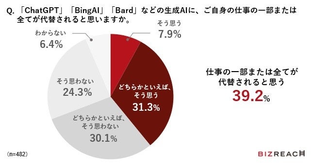 約4割が「仕事の一部または全てが代替されると思う」と回答