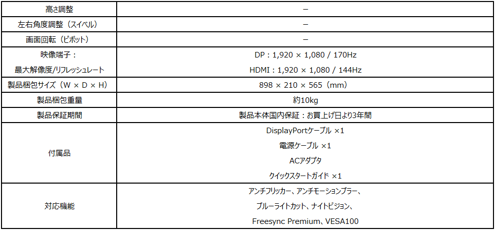 FPSゲームなど激しい動きのゲームでも滑らかな映像を残像感無く表示出来ます。