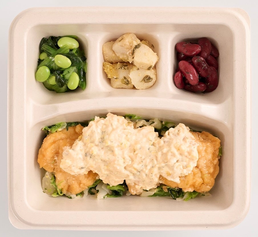 完成され、試食した時の商品の感想はズバリ「美味しい!」です。タルタルソースの再現もですが、南蛮酢、お肉のヘルシー感とたっぷりタルタルソースとの全体バランスがとても良く、当店の人気商品「チキン南蛮」がとても良く再現されていると思いました!