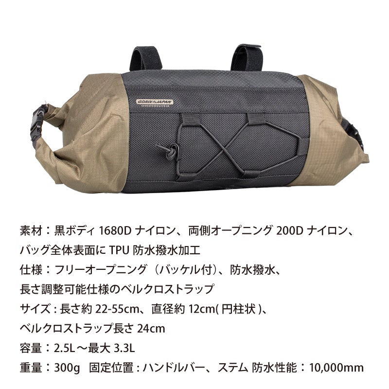 長さ約22-55cm、直径約12cm(円柱状)、ベルクロストラップ長さ24cm