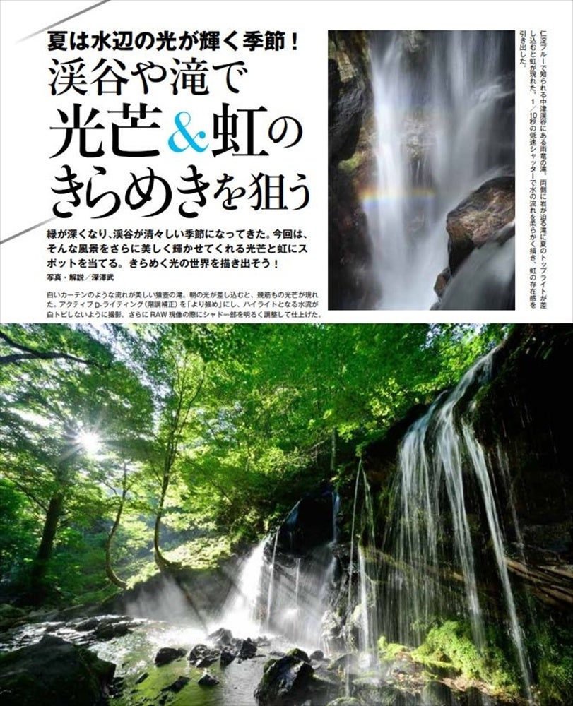 - 【渓谷や滝で「光芒&虹」のきらめきを狙う】