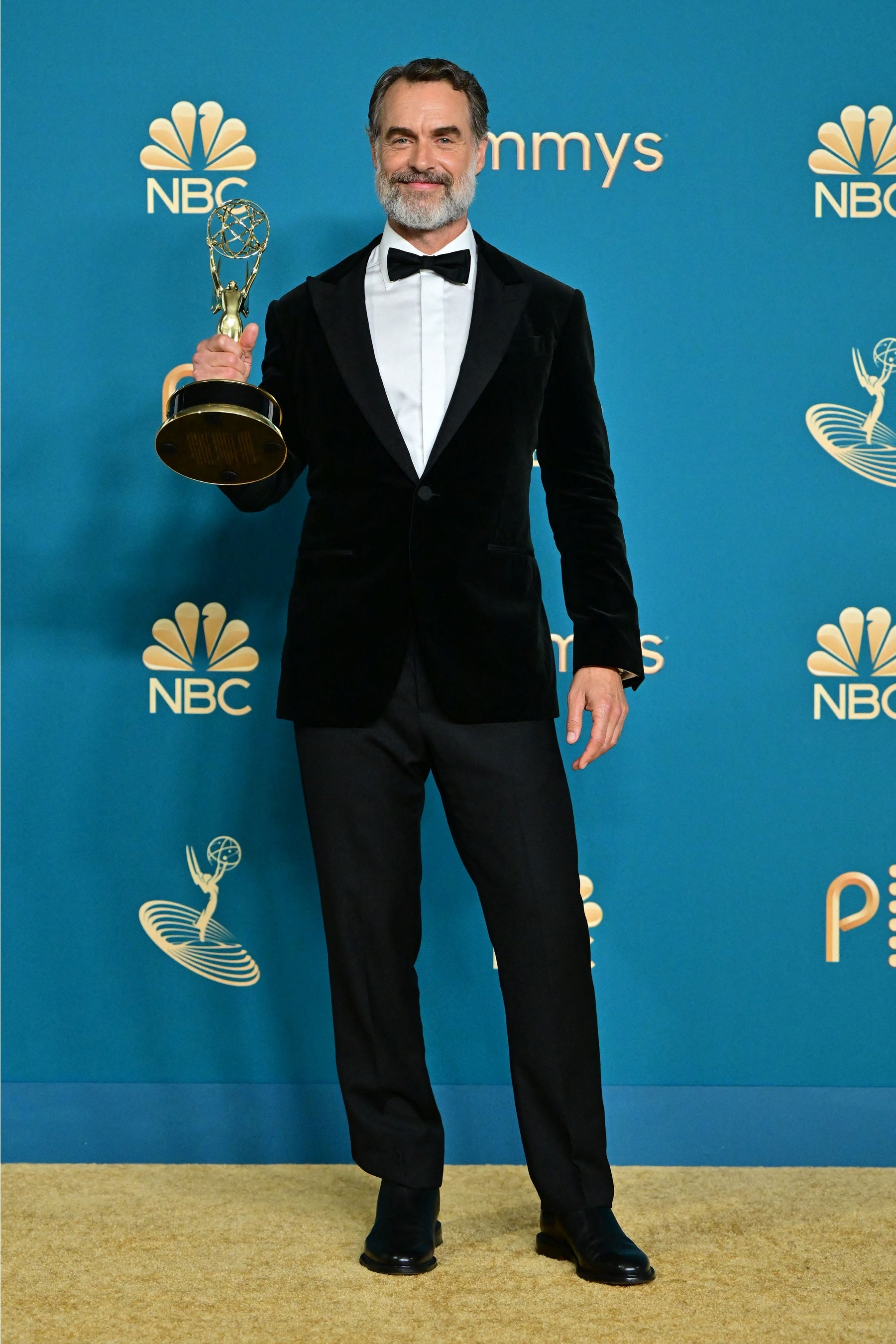 リミテッドシリーズ&テレビ映画部門で助演男優賞を受賞したマレー・バートレットは、黒のベルベット タキシードに同じく黒のレザーブーツをコーディネート。