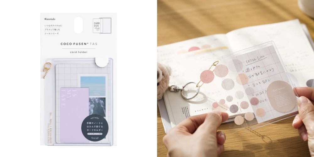 お気に入りのカードや、よく使うシールなどを汚れや折れから守りながら見やすく手帳やノートに挟んで持ち歩くことができるハードタイプのカードホルダー。リングノートやシステム手帳のリングに取り付けてページにはさんだり、カバンやポーチにつけたり、お好みの場所や用途で楽しめます。