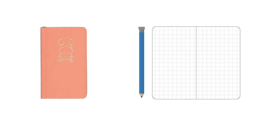 ポケットに入る小さなサイズのノート。鉛筆付きなので思い立ったらすぐにメモできます。中はピンクの5mm方眼で、書いた文字が書きやすく、見やすいのが特長です。