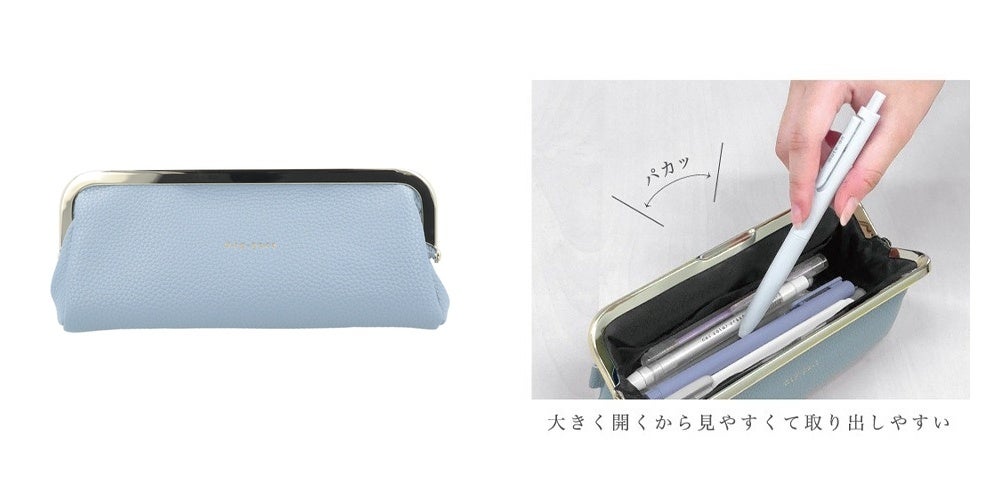 マグネットのがま口ペンケース。パカッと大きく開くので、中身が見やすく取り出しやすくなっています。小物の仕分けに便利な内ポケット付きで、ペンケースとしてだけでなく化粧品ポーチとしても使えます。