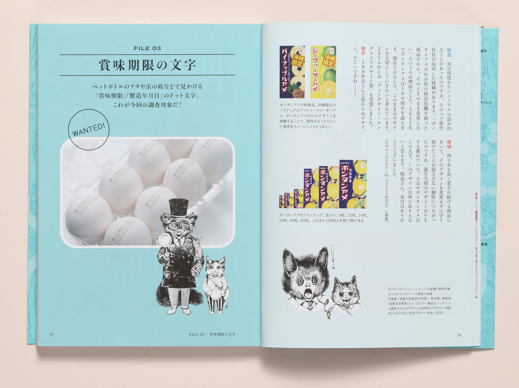 くらしのなかで目にするさまざまな文字のデザインは、いつ、どこで、だれが手がけているの? を、アイアイ探偵と助手のネコくんが徹底調査し謎を解き明かす『デザインのひきだし』連載「もじモジ探偵団」の書籍化第2弾。