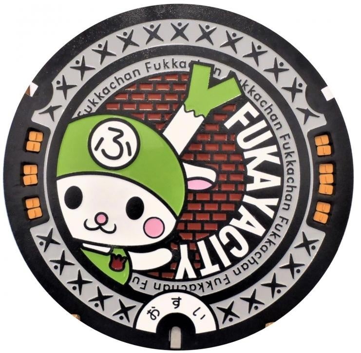 ふじみ野市のPR大使を務めるマスコットキャラクター「ふじみん」を描いたマンホール蓋です。