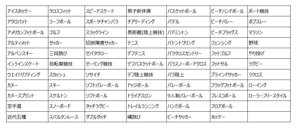 ゴルフ:穴井詩、尾関彩美悠、都玲華 / バドミントン:松友美佐紀 / 野球:秋山翔吾、松本剛
