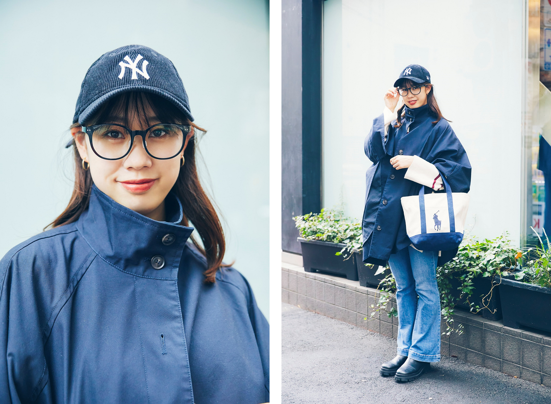 大きめのウェリントン型はちょっぴりシャープな印象。太めの縁のデザインでメンズライクにかけこなしたい。