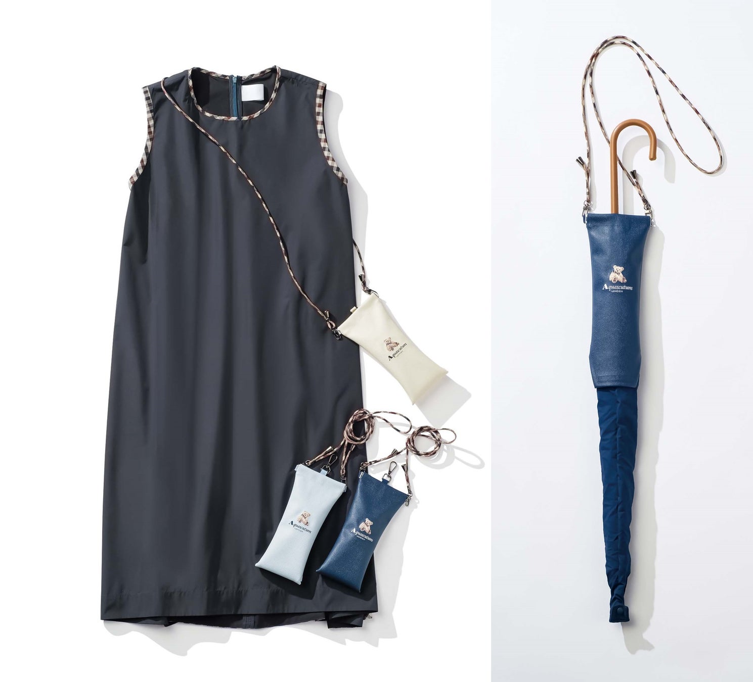クラブチェックをアクセントにしたワンピースと、2ウェイ仕様の傘収納ケース。