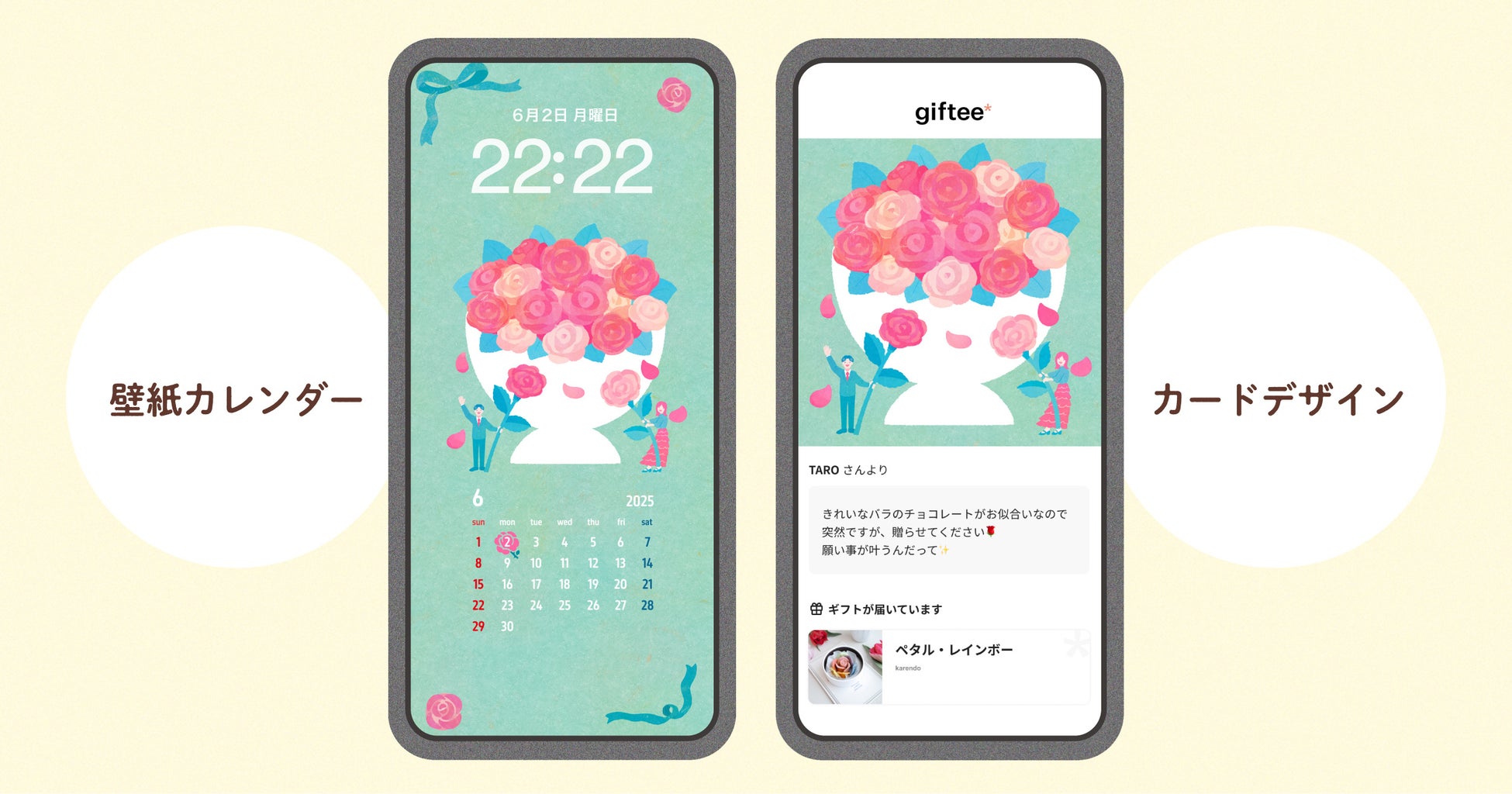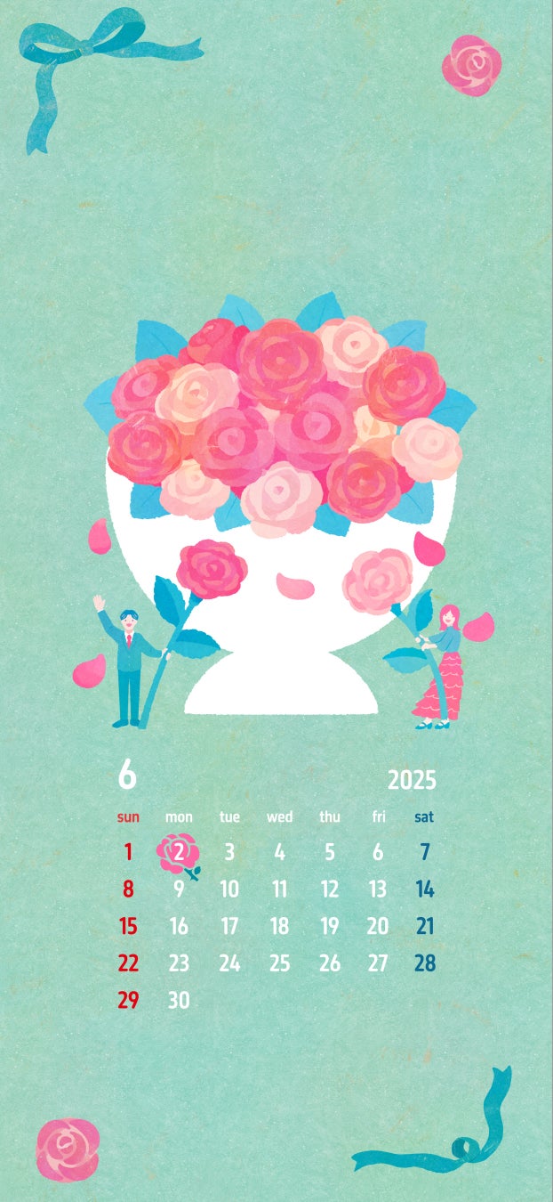 〈毎月1日、誰かにキモチを贈りたくなる「◯◯の日」を公開!〉“記念日”にちなんだ「giftee®」オリジナルのスマホ用壁紙カレンダー「おくりものカレンダー」2025年6月2日(月)は「ローズの日」