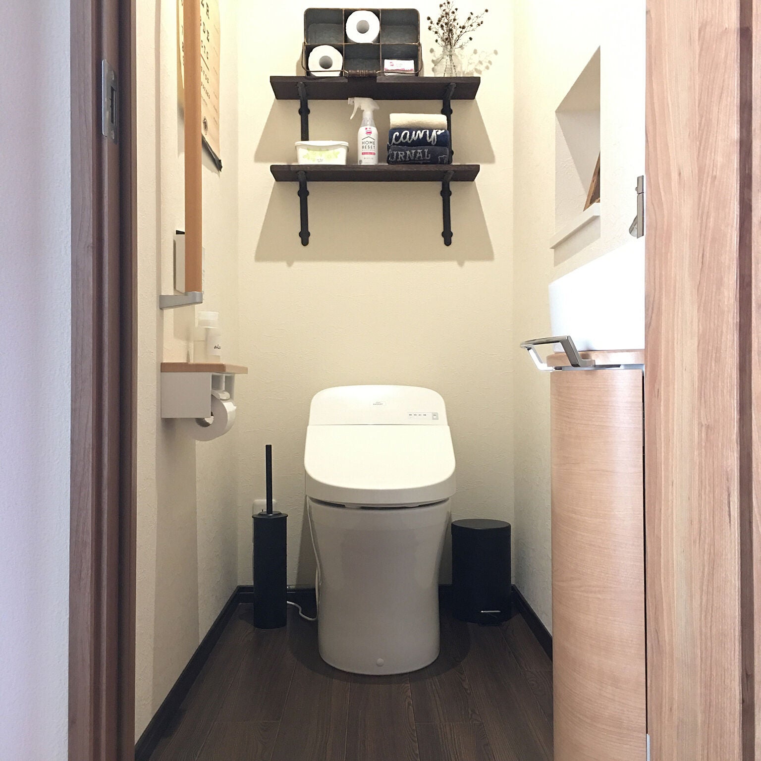 お掃除のしやすさとインテリアを両立していて居心地のよいトイレ空間です。ナチュラルなインテリアにブラックのアクセントが清潔感を引き立てています。