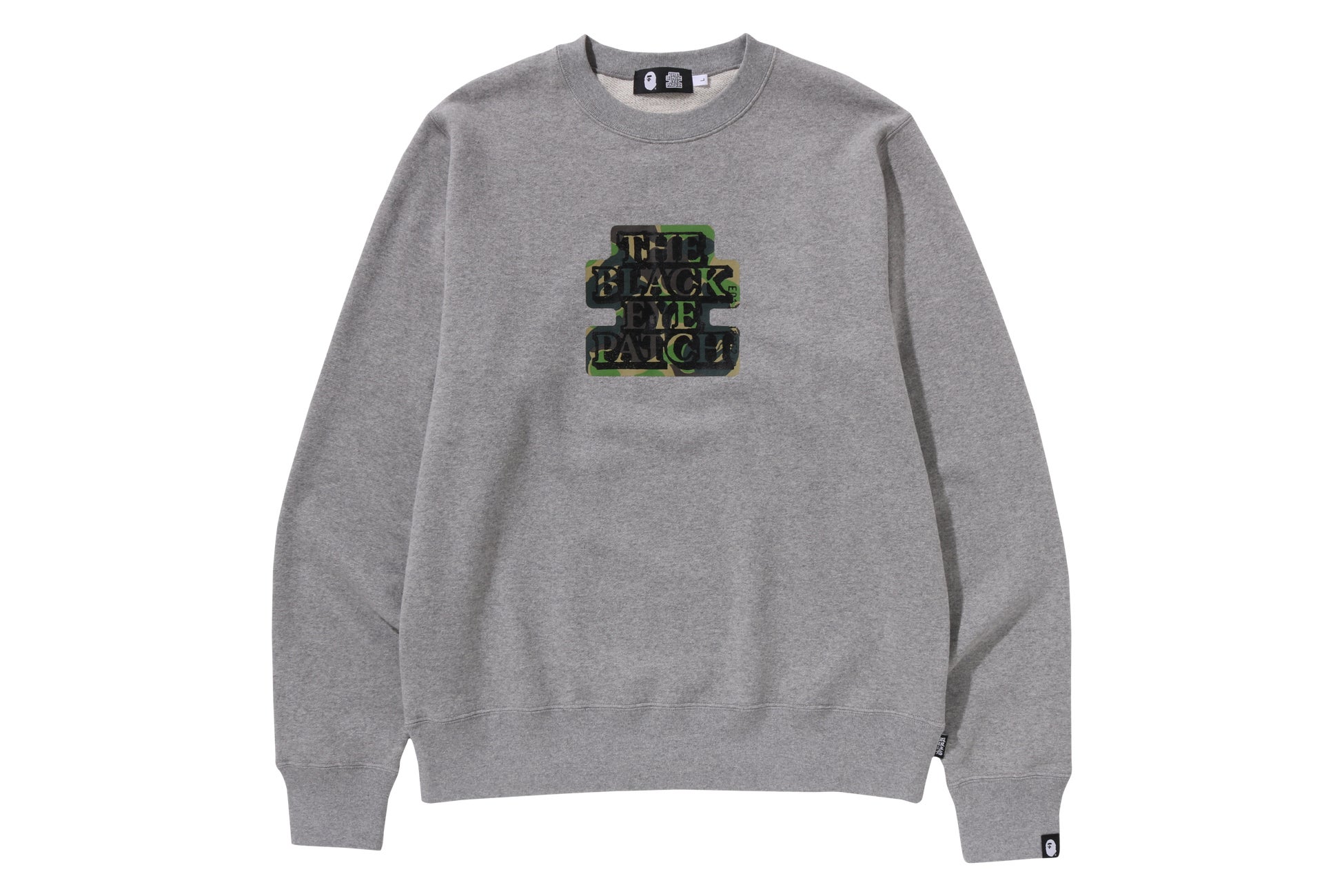 クルーネックスウェットには、“BAPE® CAMO”仕様のBlackEyePatchロゴをフロントに、バックには両ブランド名と“HANDLE WITH CARE(=取扱注意)”をプリント。