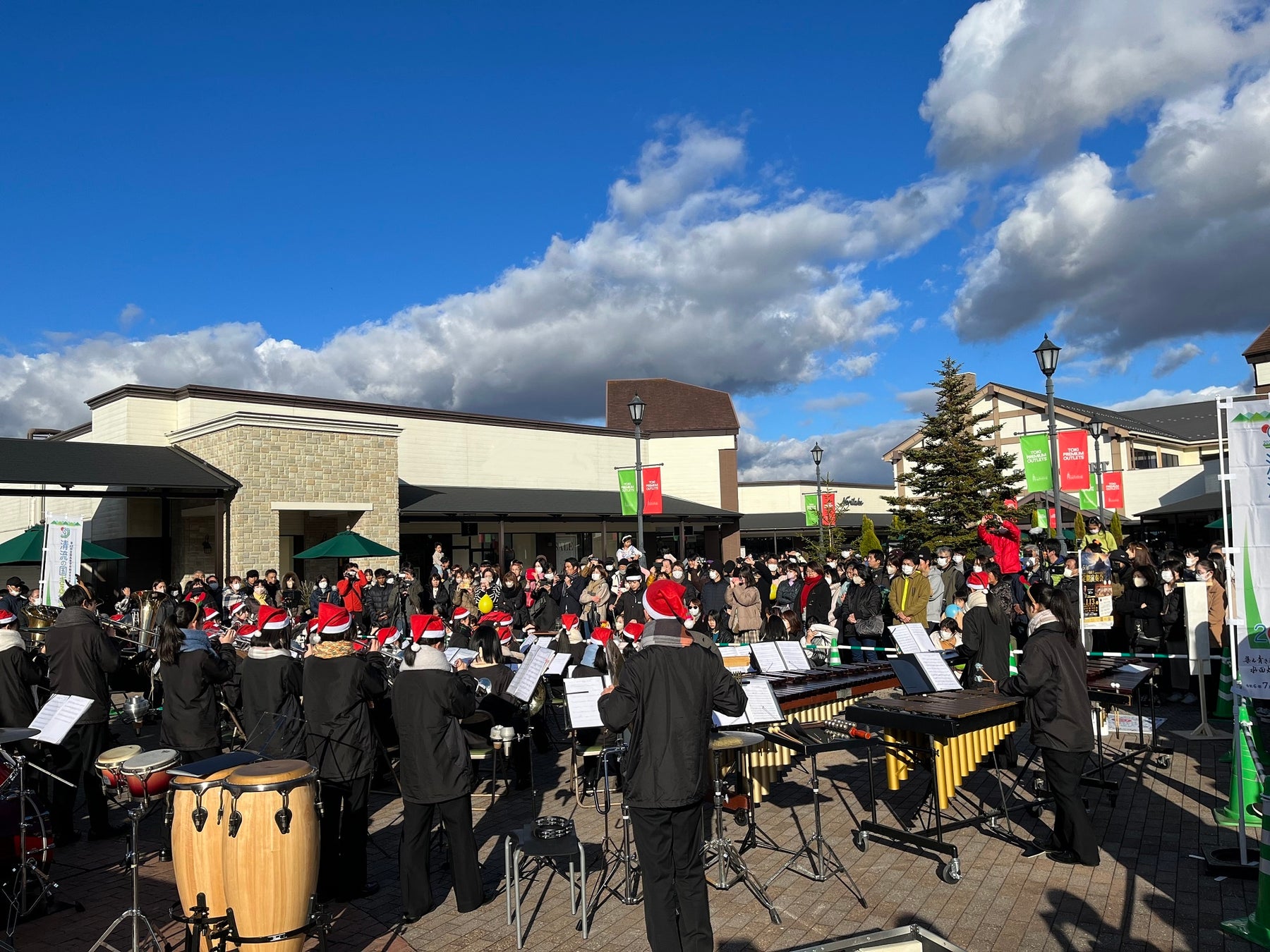 ・地域を代表する商業施設として、未来に向けた人材育成などを目的に、隣接する土岐商業高等学校(以下、土岐商)を始めとする地元高校との連携にも力を入れています。2020年には、コロナ禍で卒業公演がやむなく中止となった、土岐商吹奏楽部のコンサートを場内で開催。以降毎年クリスマスの時期に開催しており、ご来場のお客様や従業員にも喜ばれています。また、2023年に初めて開催された「土岐商SHOP」では、地元酒造会社と土岐商マーケティングコースの学生が連携しラベルをデザインしたサイダーなどを販売。2024年には、商品販売を通じてさらなる成長を図るために、土岐プレミアム・アウトレットの社員らによる接客授業を実施しています。