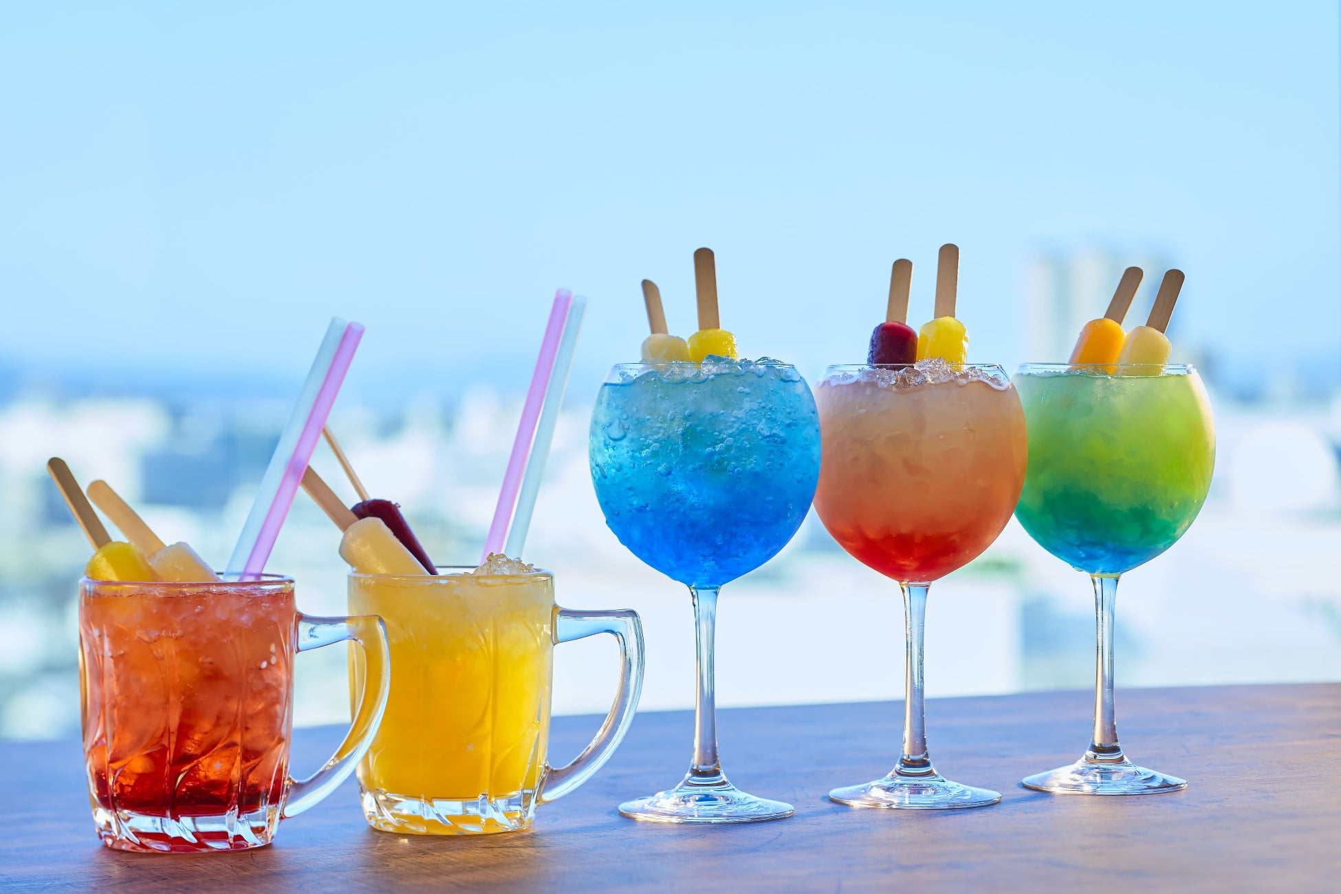 生ビール3種(ザ・プレミアム・モルツ、ザ・プレミアム・モルツ〈香る〉エール、サントリー生ビール)、ワイン(赤・白・ロゼ)、スパークリングワイン1種、カクテル4種、ハイボール、焼酎、サワー5種、梅酒、ノンアルコールビール、九州果実ノンアルコールカクテル6種、ソフトドリンク5種、プレミアム和モクテル