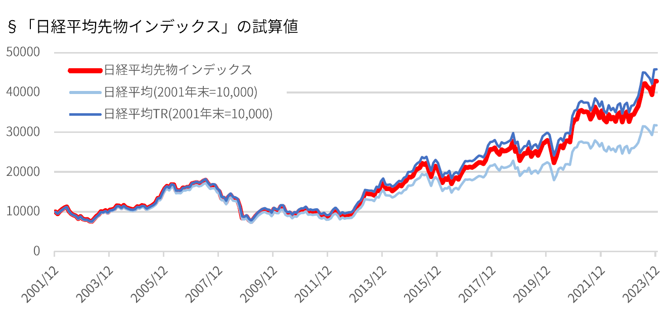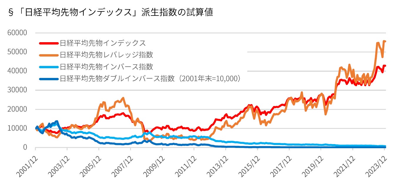 ・ 日経平均先物レバレッジ・インデックス、日経平均先物インバース・インデックスは、2001年末の値を10,000として遡及算出