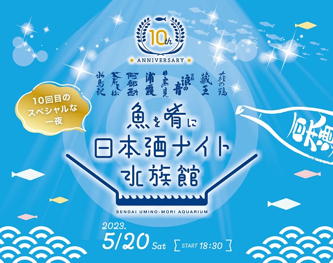 海と人、水と人との、新しい「つながり」をうみだす水族館、『仙台うみの杜水族館』では、2023年5月20日(土)の閉館後、復興支援企画「魚を肴に 日本酒ナイト水族館」を開催いたします。宮城を代表する酒蔵の日本酒を片手に、幻想的な夜の水族館をお楽しみいただける大人のためのナイトイベントです。