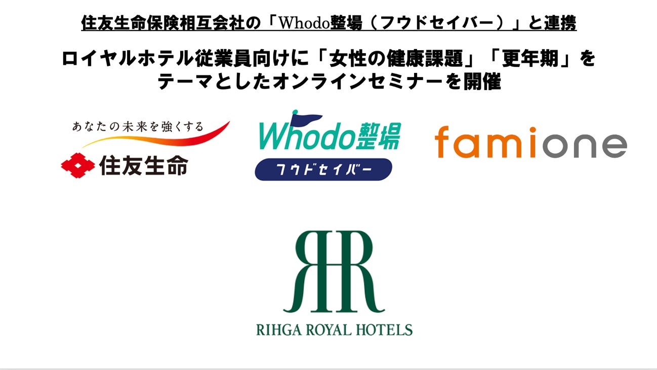 「子どもを願うすべての人によりそい 幸せな人生を歩める社会をつくる」をビジョンに掲げ、法人の従業員向け福利厚生や自治体の住民向け支援を行うヘルスケアサポートサービス「ファミワン」 https://famione.com/benefit/ などを展開する株式会社ファミワン(本社:東京都渋谷区、代表取締役:石川勇介)は、住友生命保険相互会社(本社:大阪府大阪市、取締役 代表執行役社長:高田 幸徳)の不妊治療と仕事の両立支援ソリューション「Whodo 整場(フウドセイバー)」を介し、株式会社ロイヤルホテル(本社:大阪府大阪市、代表取締役社長:植田 文一、以下ロイヤルホテル)の健康経営推進者向けに「女性の健康課題、男性の更年期」をテーマとしたオンラインセミナーを開催いたしました。