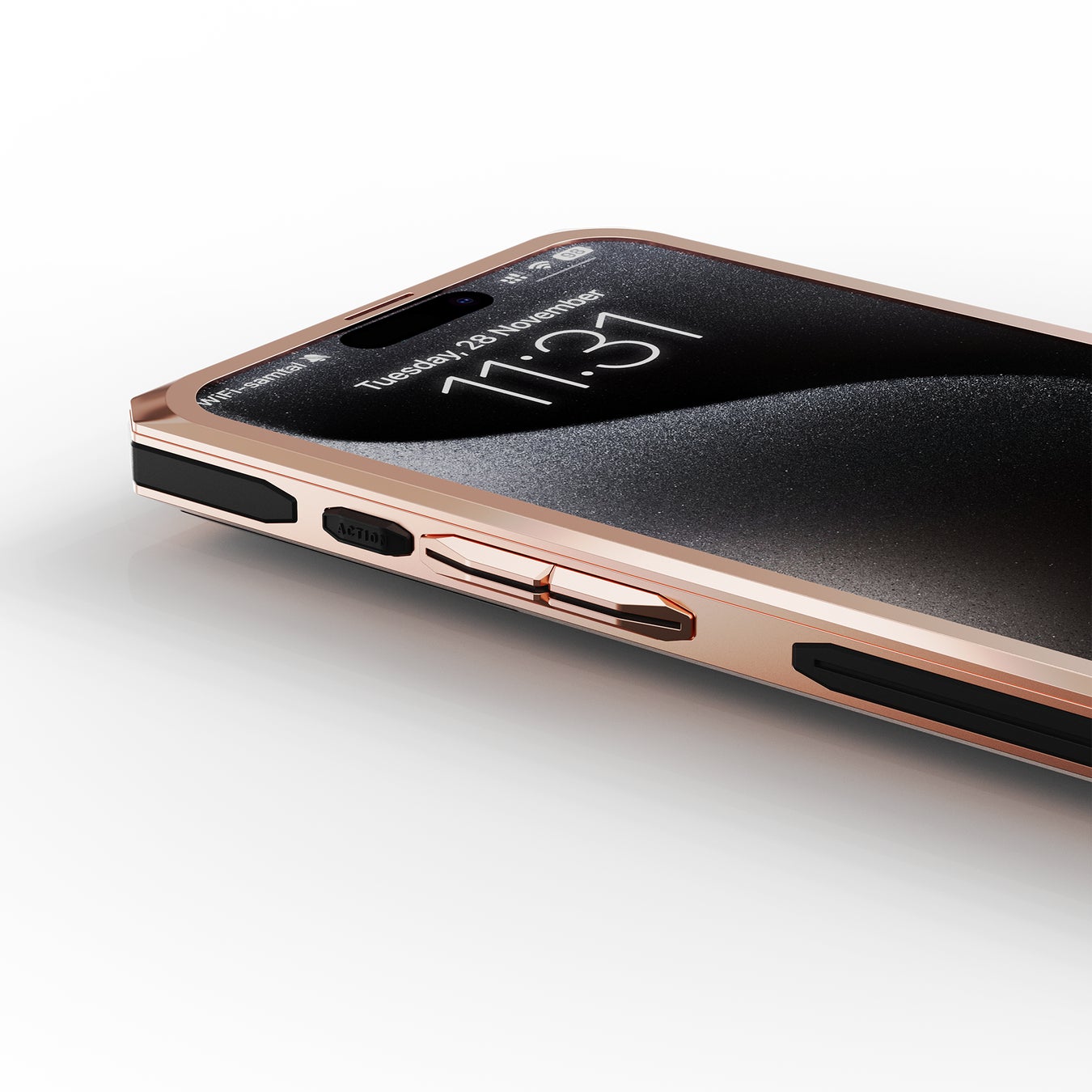 サイドボタンからディスプレイライン全てを覆う構造は、ゴールデンコンセプト独自の設計です。四隅のネジを止めるだけで簡単に装着が可能で、操作性も問題なく、耐久力にも優れています。