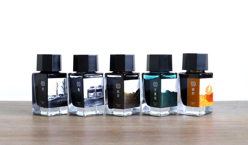 インクのカラーは5色をご用意。台湾から見た日本の原風景をイメージした、どこか懐かしさを感じさせる色合いです。涅(ブラック)、竈(グレー)、薪炭(ブラウン)、天鵞絨(ダークグリーン)、蜜柑(オレンジ)など、【HAPPYMT】の世界観を表現するためにネーミングにもこだわりました。