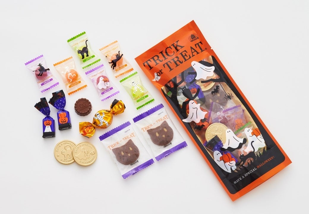チョコレートやキャンディ、チョコレートクッキー、バタークッキーなどをそれぞれ詰め合わせました。ハロウィーンキャラクターデザインの個包装や、かわいいくろねこ型やかぼちゃ型のクッキーが、ハロウィーンを一層盛り上げます。どれでも3袋で1,080円!ちょっとしたプレゼントにもぴったりです。
