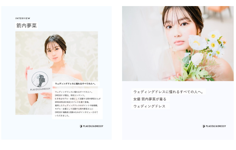 女優 箭内夢菜さんが花嫁アプリ『PLACOLE&DRESSY』にウェディングドレス姿で初登場!ウェディングドレスに憧れるすべての人へのメッセージとは?