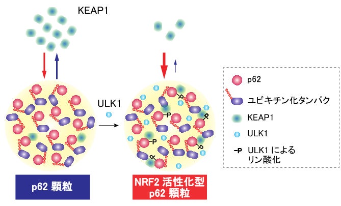 今回の成果は細胞のストレス応答機構や液―液相分離の生理的役割について新たな知見を与えるものです。また、p62顆粒は肝疾患、神経変性疾患の病変細胞や肝細胞がんにおいて過剰に蓄積することが知られており、これら病態においてレドックス非依存性ストレス応答が調整不全となっていることが強く疑われ、それら重篤な疾患の病態発症機序の解明が期待されます。