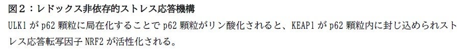 タイトル(日本語訳):相分離したp62顆粒のULK1によるリン酸化は、酸化還元非依存的なストレス応答を活性化する