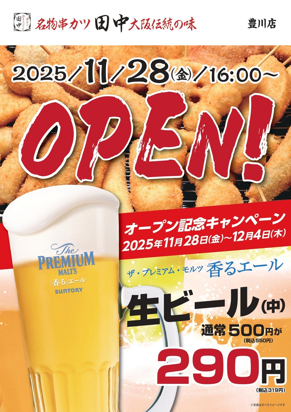 【新店情報】『串カツ田中 豊川店』が11月28日(金)にオープン!オープン記念キャンペーンで【生ビール290円(税込319円)!】