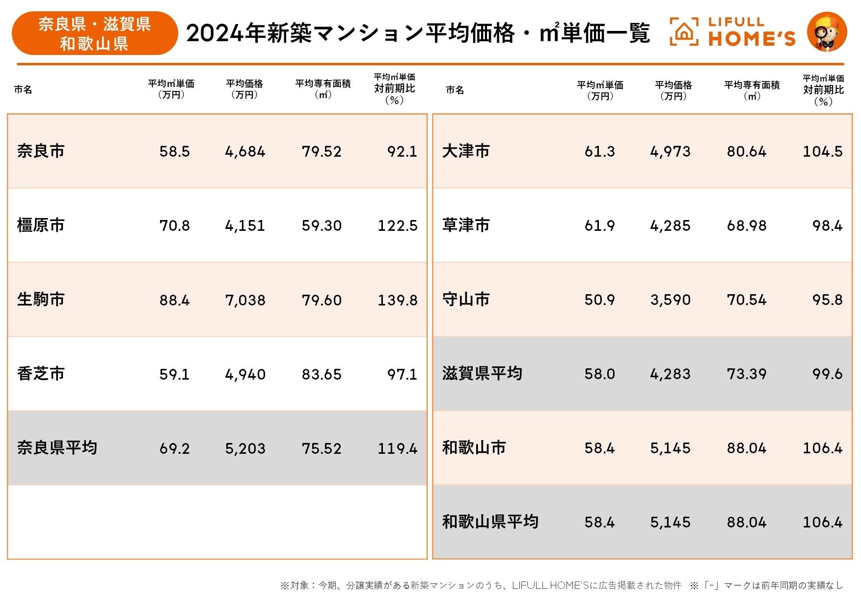 奈良県、滋賀県、和歌山県の市区町村別での平均価格、平均㎡単価一覧もあわせてご覧ください。