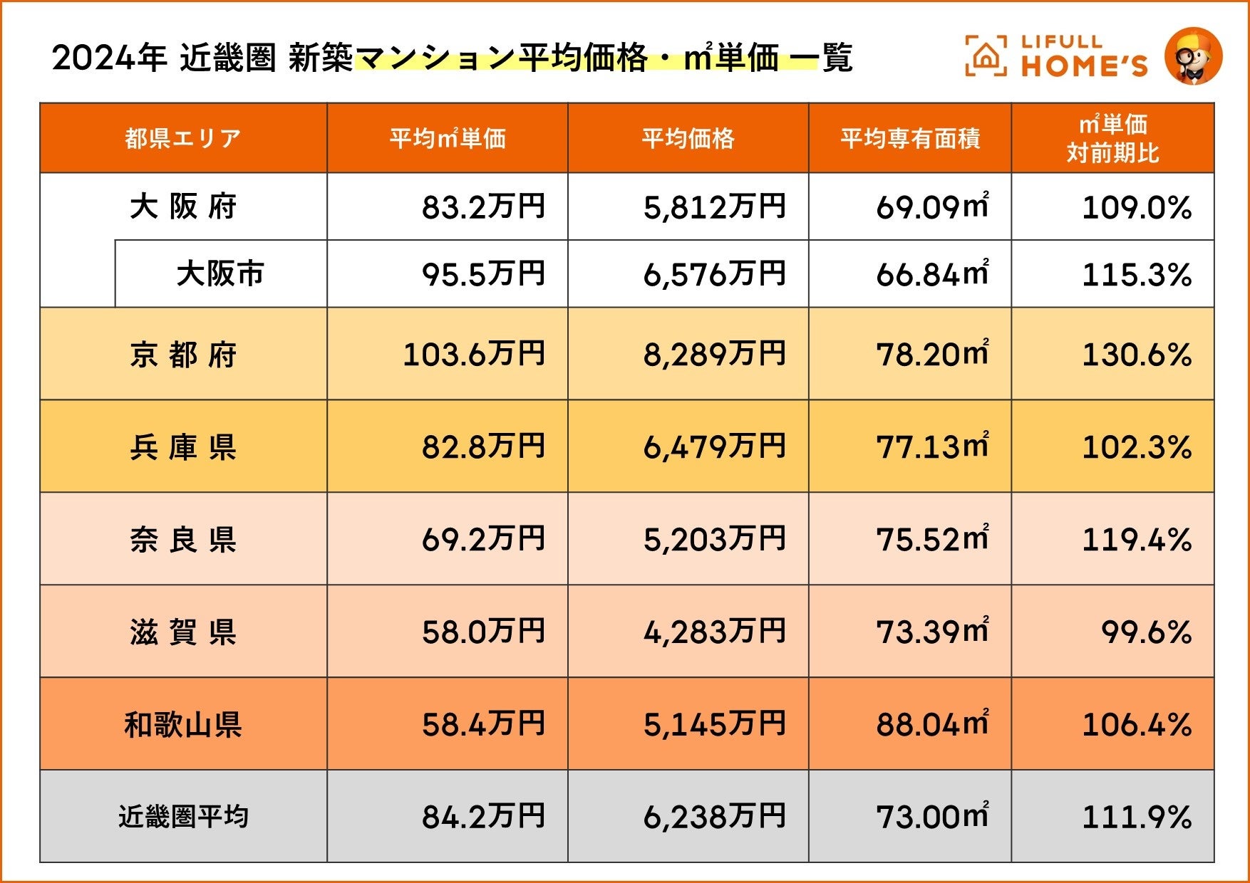 集計対象:大阪府、京都府、兵庫県、奈良県、和歌山県、滋賀県内で分譲された新築マンションのうち、LIFULL HOME'Sに広告掲載された物件を行政区&自治体単位で集計