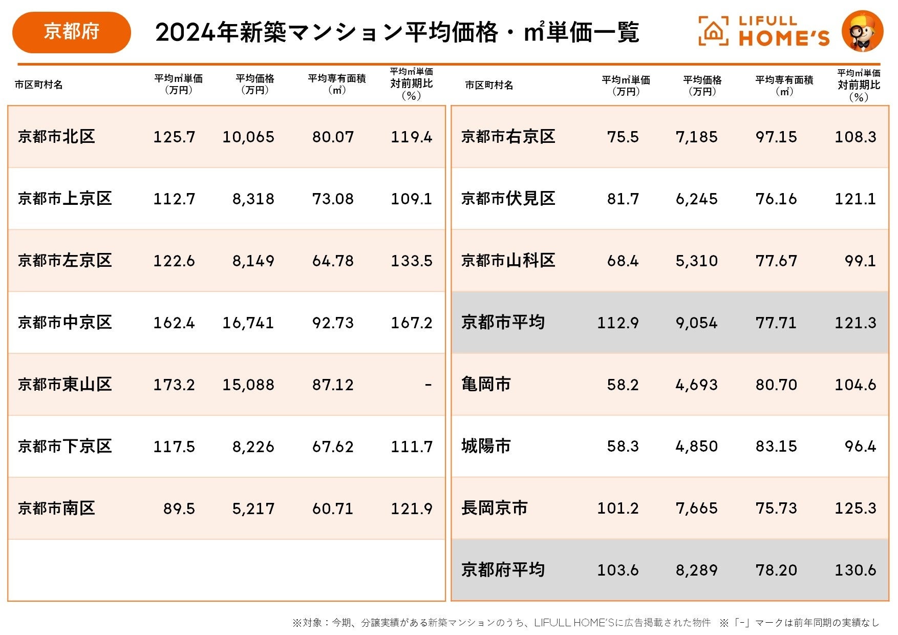 京都府内の市区町村別での平均価格、平均㎡単価一覧もあわせてご覧ください。